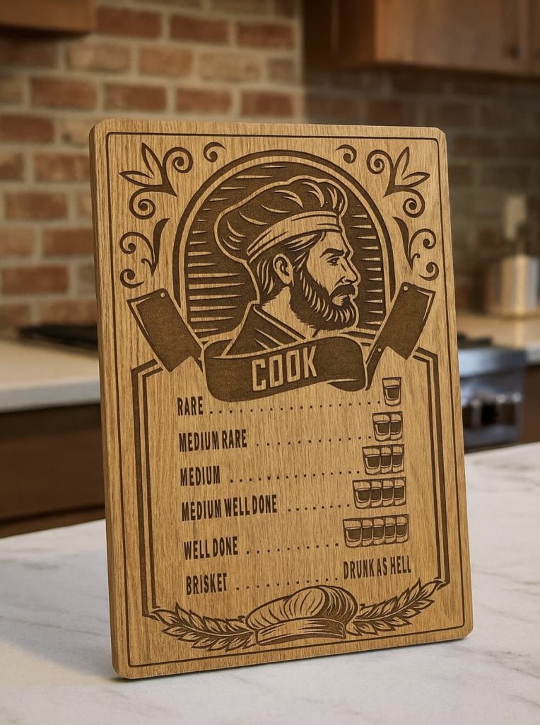 Dekorativna drvena tabla sa BBQ motivom, savršena za kuhinju, roštilj zonu ili kao originalan poklon za ljubitelje kuvanja i roštilja.