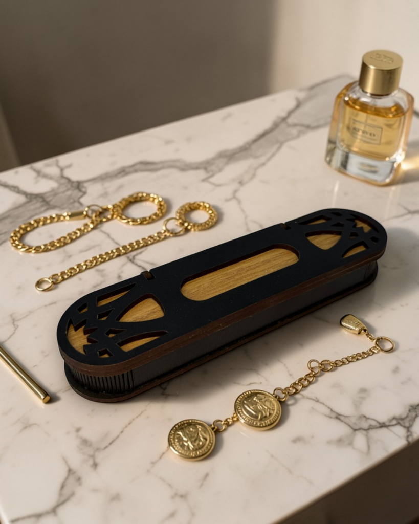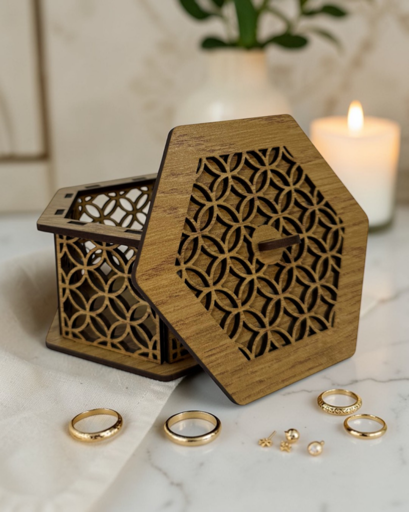 Elegantna drvena kutija namenjena za odlaganje minđuša i sitnog nakita. Minimalistički dizajn i kompaktan oblik čine je praktičnim i dekorativnim dodatkom za svaki prostor.